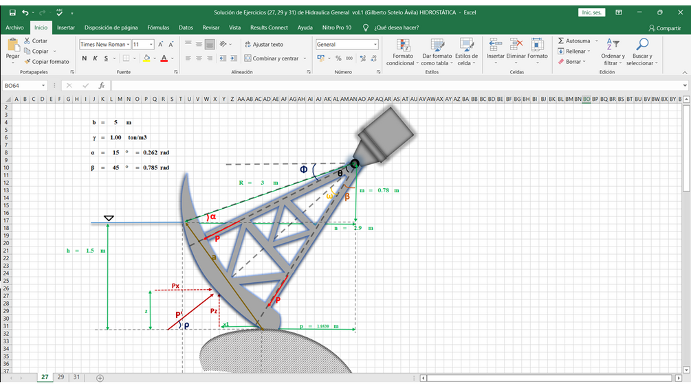 Solución en excel de los ejercicios 27, 29 y 31 del libro de Hidraulica General vol.1 (Gilberto Sotelo Ávila) Cap. 2 HIDROSTÁTICA